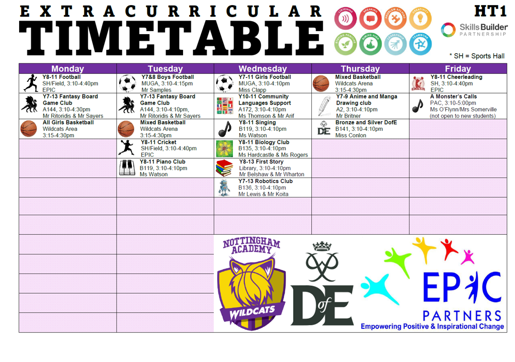 As the new academic year approaches, we are excited to unveil our updated Extra-Curricular timetable, designed to offer a diverse range of activities that cater to all interests and talents.