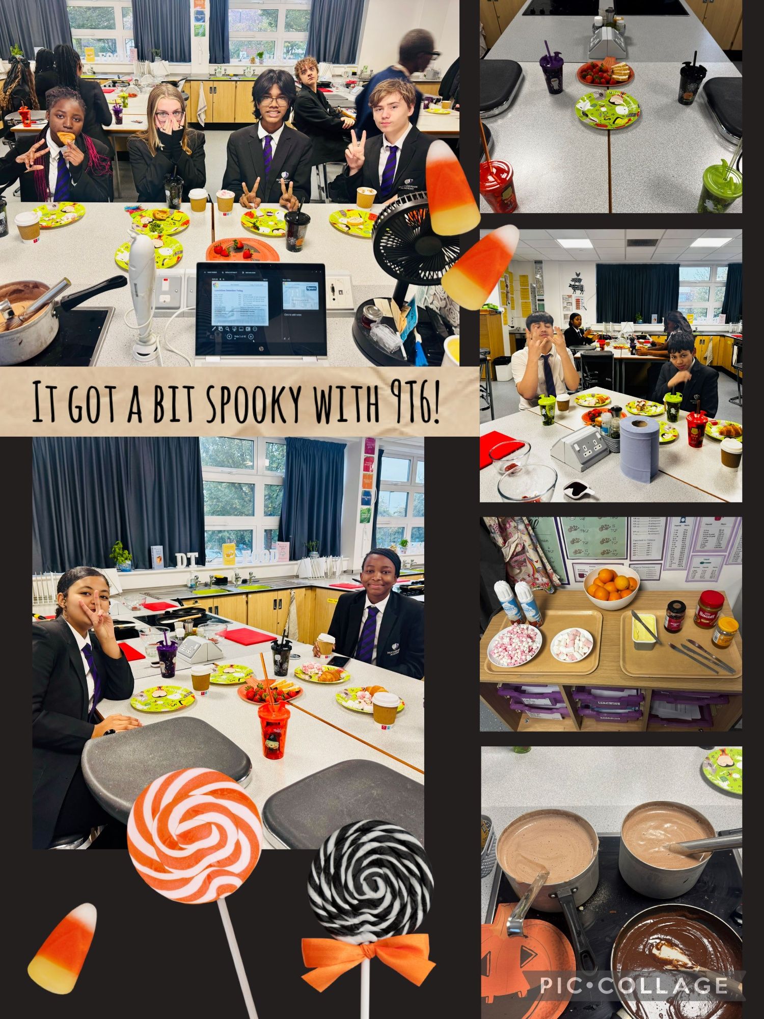 To celebrate the end of half term, 9T6 enjoyed a Halloween-themed breakfast featuring freshly baked croissants, fruit platters, and luxury hot chocolate with all the toppings! A perfect mix of treats, laughter, and spooky vibes to round off a fantastic end of half term together. πŸ§‘πŸ•ΈοΈπŸ«